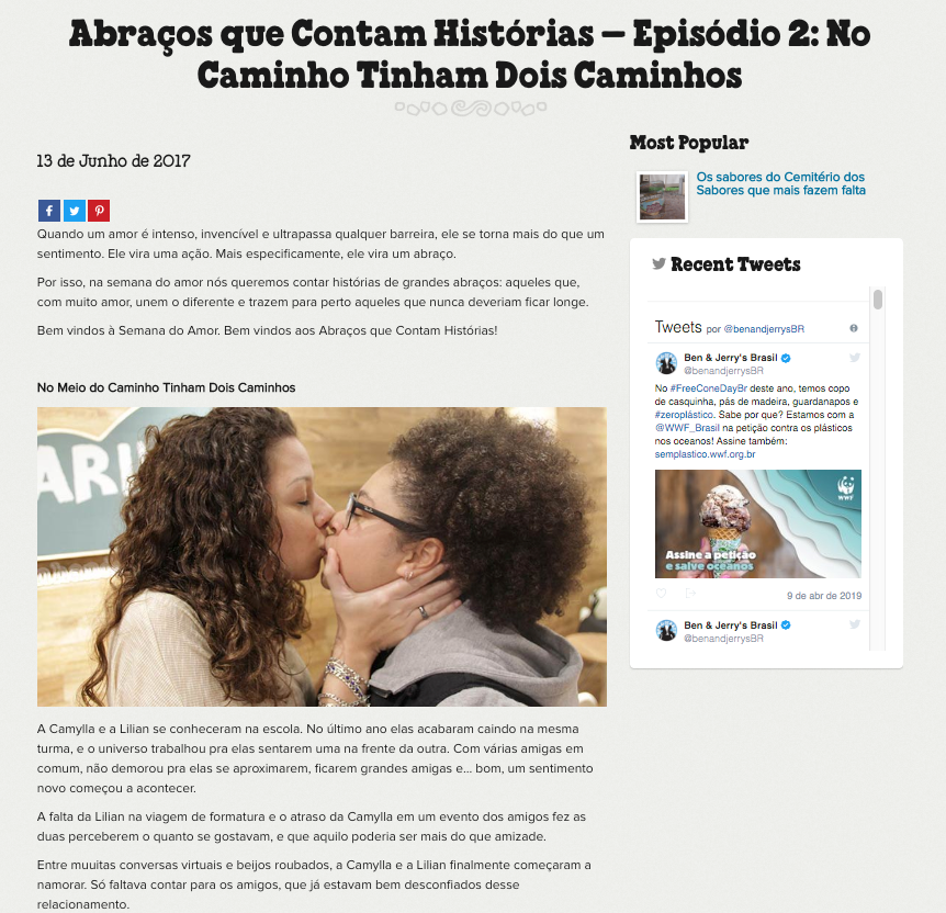 A marca sempre apoia a causa LGBT. Está ativamente envolvida em manifestações, é presença confirmada todos os anos na parada, e promove encontros e debates nas lojas durante o ano inteiro. Mas nos Dia dos Namorados, decidimos dar espaço para falar sobre aceitação contando no Instagram da marca as “love stories” dos nossos fãs <3